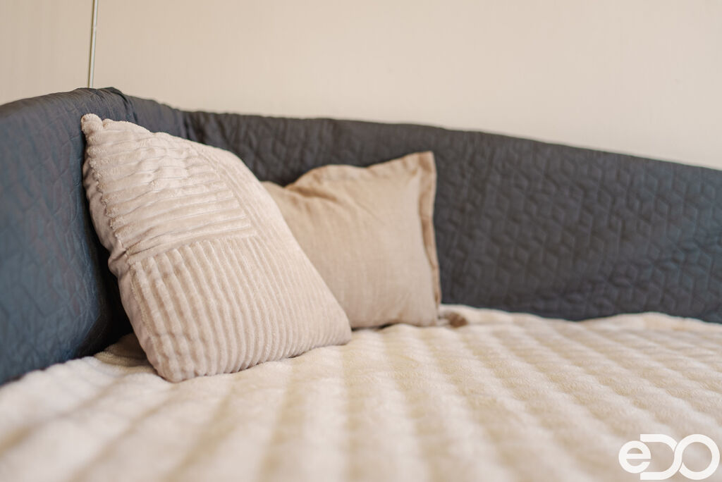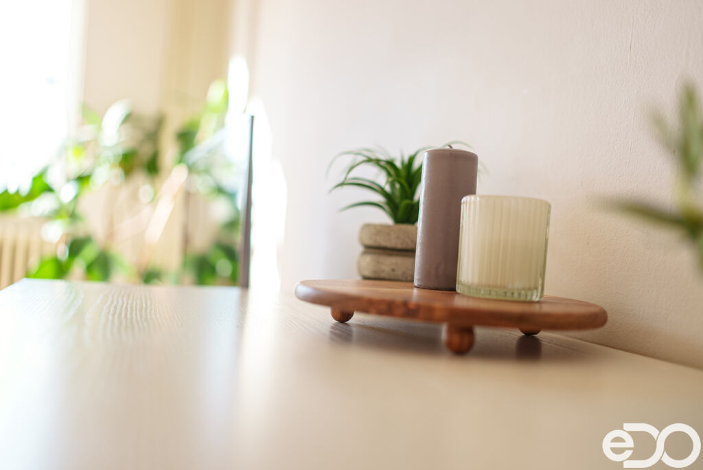 Obě obytné místnosti jsou neprůchozí, mají stejnou velikost a vlastní okno, díky čemuž je dispozice přirozeně vyvážená a nabízí dostatek soukromí. Okna jsou orientována na jihozápad, takže je byt po celý den příjemně prosvětlený.