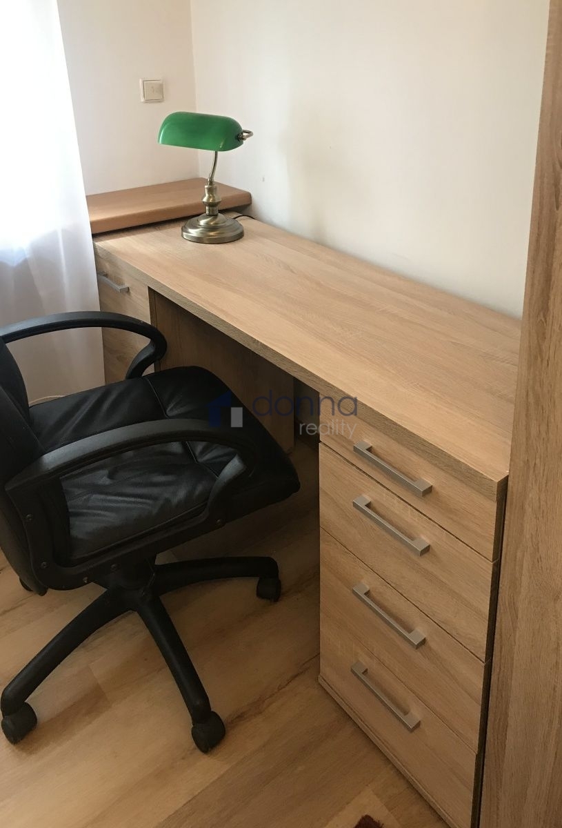 Byt je kompletně zařízený viz foto v nabídce: kuchyňská linka vč. el. dvouplotýnky, lednice, jídelní stůl + židle, police, rozkládací gauč, psací stůl, šatní skříň, spíž. Koupelna s vanou a toaletou, menší vstupní předsíň.