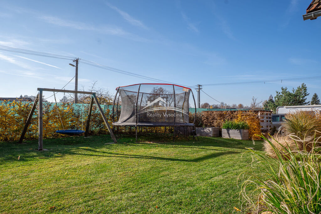 Pozemek nabízí dva samostatné vjezdy – jeden k domu a garáži, druhý do zahrady. Nachází se zde vydlážděná terasa a klidová zóna pro odpočinek na krásné udržované zahradě.