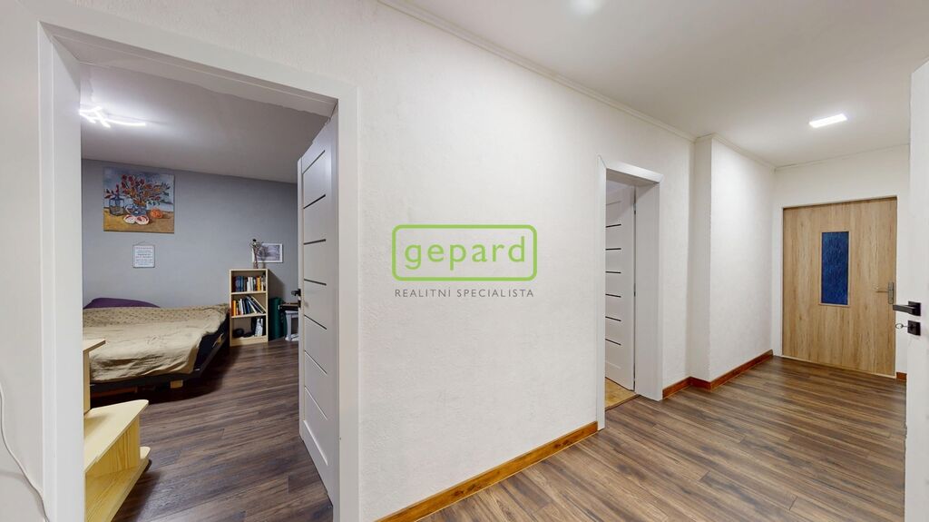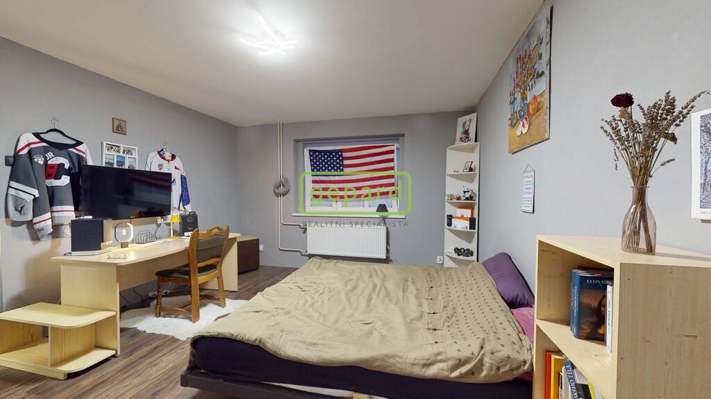 První patro domu prošlo kompletní rekonstrukcí – byla zde obnovena elektroinstalace, jističe, podlahy, okna i dveře, stejně jako koupelna a samostatná toaleta. Nachází se zde ložnice, dětský pokoj, obývací pokoj, kuchyň s keramickou dlažbou, koupelna se sprchovým koutem, samostatné WC, technická místnost a vstupní chodba. Druhé patro nabízí tři menší pokoje, jeden větší pokoj, obývací pokoj, kuchyň a koupelnu s vanou. Podlahy v horním patře jsou řešeny kombinací OSB desek a koberců, v kuchyni je na betonu položeno lino a v koupelně dlažba.