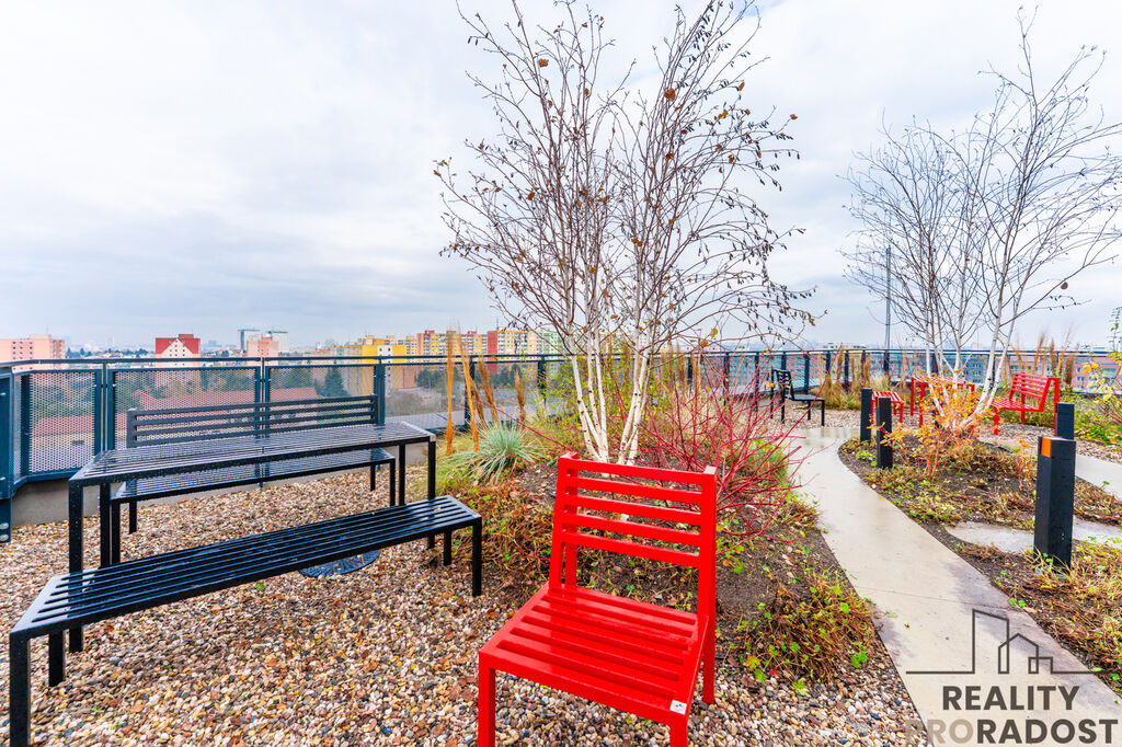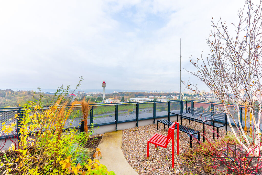 Střešní zahrada: Na stejném patře, kde se nachází Váš byt, na Vás čeká krásná a prostorná střešní zahrada. Tato společná oáza klidu je ideálním místem pro relaxaci a odpočinek s jedinečným výhledem.