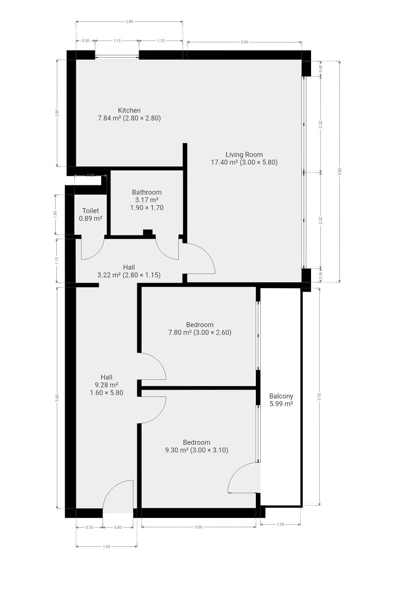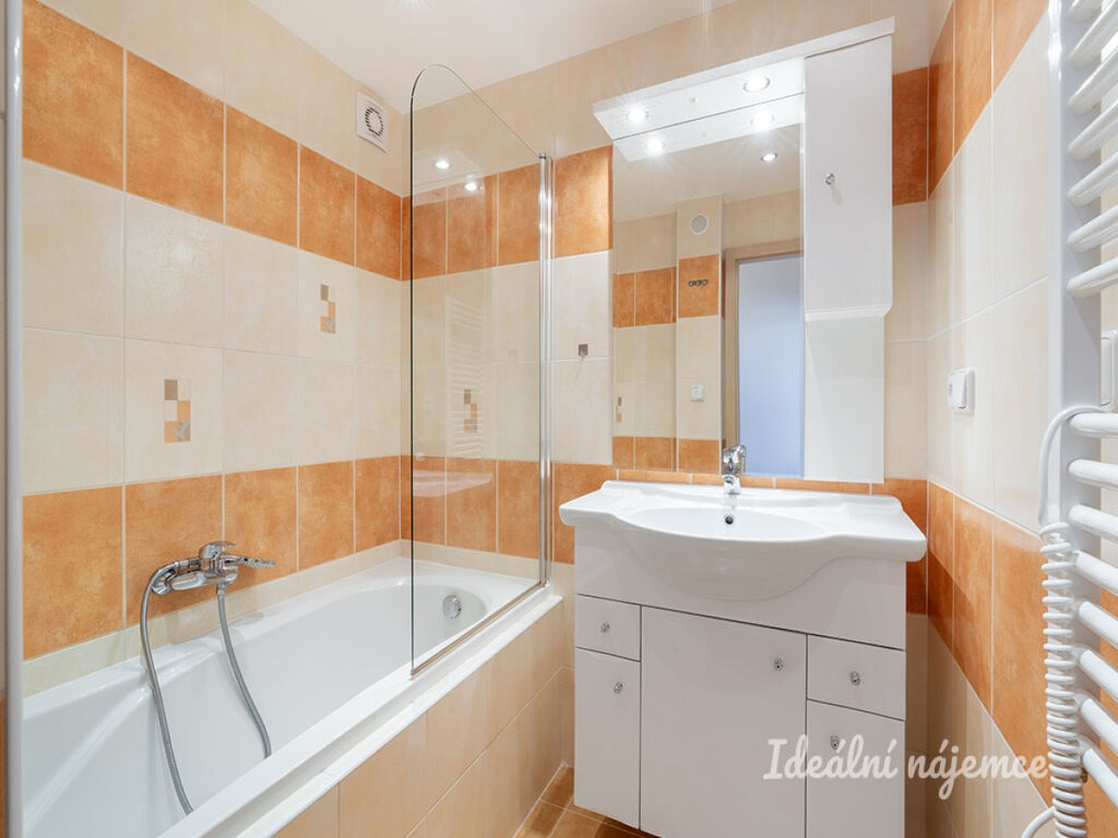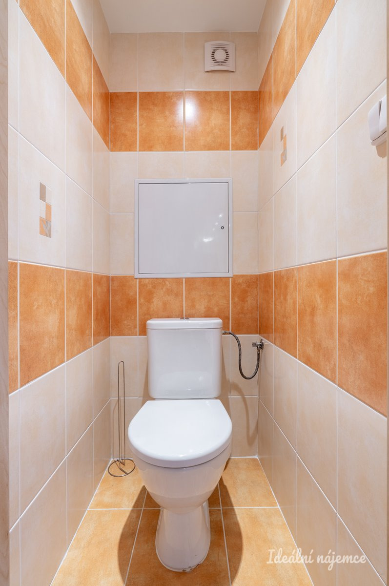 Toaleta je umístěna samostatně. Koupelna je zařízena vanou a koupelnovou skříňkou.