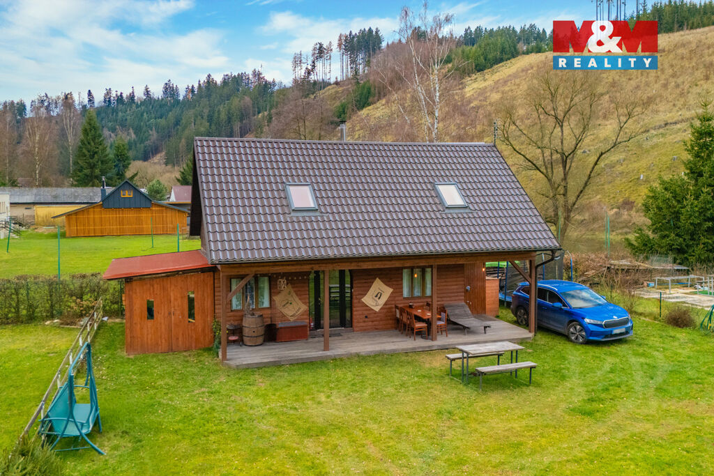 Malebná chatu po kompletní rekonstrukci, zateplená, k celoročnímu užívání v lukrativní lokalitě. Přímo u řeky, v klidné části obce Chřenovice. Tato samostatně stojící nemovitost se nachází na vlastním pozemku o rozloze 378 m² v těsné blízkosti řeky Sázavy a nabízí užitnou plochu na dvou podlažích. V přízemí se rozkládá obývací pokoj, plně vybavená kuchyň a koupelna (sprchový kout, WC, umyvadlo). Loftové patro je rozdělené komínem na dvě hlavní části, využitelné na spaní, pracovnu, apod. Další sprcha s přívodem teplé vody je na venkovní terase. Vytápění zajišťují krbová kamna s vodním výměníkem, rozvod podlahového vytápění, ohřev vody pak elektrický bojler. Na střeše je FVE, která vytvoří dostatek energie pro vlastní spotřebu i s přebytky. Chata je ideálním místem pro víkendové úniky z města, rybáře, jako letní sídlo i na zimní radovánky s komfortem rodinného domu. Okolí nabízí krásnou přírodu, klid, soukromí. Příležitost mít útulné místo k relaxaci nebo investici s možností pronájmu.