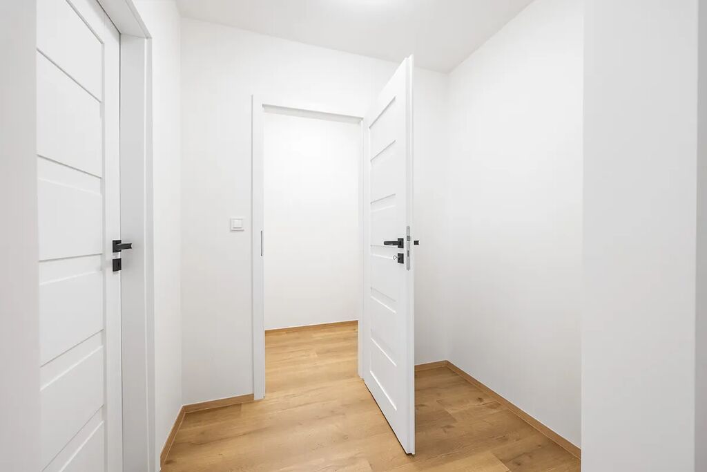 Byt vypadá přesně jak vidíte na fotografiích, nejedná se o vizualizaci. Kuchyně je vyrobena na míru a kompletně vybavená spotřebiči (elektrická trouba, indukční deska, myčka) a spolu s obývacím pokojem vytváří ideální společenský prostor. Prostorná koupelna s velokormátovými obklady je s vanou, sprchovou zástěnou a umyvadlovou skříňkou se dvěma zásuvkami. V bytě jsou dvě ložnice a také prostorná komora nebo šatna a samostatná toaleta.