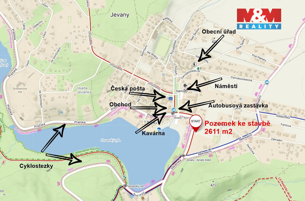 Prodej stavebního pozemku 2 611 m² v obci Jevany. Atraktivní a mimořádně klidná lokalita obklopená přírodou, vodními plochami a lesy, přesto s výbornou dostupností do Prahy. Velkorysá zastavitelnost 22 % umožňuje výstavbu dvoupodlažního domu s nadstandardní podlahovou plochou až 574 m2 – ideální pro moderní rodinné sídlo, vilu, kombinaci bydlení a home office nebo reprezentativní rezidenční projekt. Elektřina je již přímo na pozemku, voda a kanalizace na jeho hranici – připraveno k okamžitému zahájení stavby. Pozemek je rovinatý, oplocený, s přímým vjezdem z obecní komunikace. Okolí poskytuje soukromí a klid, zároveň každodenní pohodlí: mateřská i základní škola, obchod, restaurace, lékař, pošta, sportovní areály i pravidelné spojení PID. Rybník, cyklostezky a běžecké trasy jsou v docházkové vzdálenosti. Lokalita s vysokou stabilitou hodnoty nemovitostí a velmi omezenou nabídkou stavebních pozemků. Cena 4550 Kč/m². Výjimečná příležitost v prestižní obci. Kontaktujte nás pro prohlídku.