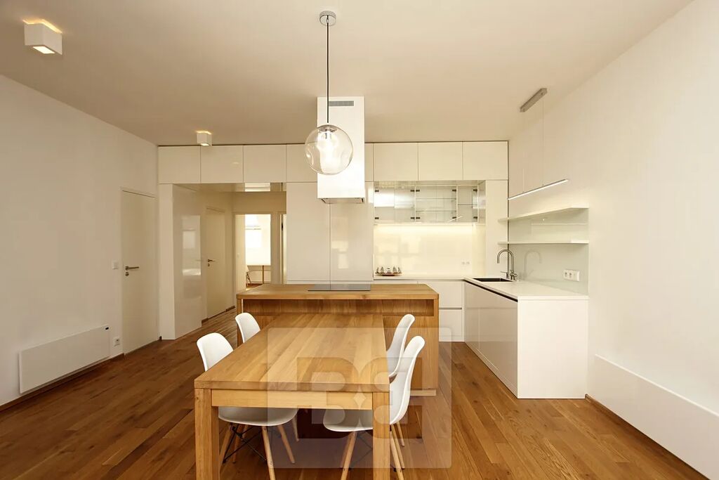 Exkluzivně nabízíme k dlouhodobému podnájmu velice pěkný, částečně zařízený byt 3+kk ve 4. patře s výtahem, v ulici U studánky, Praha 7 – Bubeneč. Jedná se o velice žádanou lokalitu v těsné blízkosti parků Stromovky a Letenských sadů. Byt o celkové ploše 83 m2 + terasa 7 m2 byl navržen interiérovým architektem. Moderní design interiéru vytváří atraktivní, a přitom vysoce funkční bydlení s množstvím úložných prostor. Sestává se z prostorného obývacího pokoje se vstupem na terasu, kuchyňského koutu vč. vestavěných spotřebičů, prostorné ložnice, pracovny, šatny, koupelny se sprchovým koutem a WC. Byt je kompletně vybaven včetně kvalitního nábytku na míru, vestavěných skříní a spotřebičů (TV, lednice/mrazák, sklokeramická varná deska, el. trouba, pračka). Vytápění el. přímotopy, ohřev vody el. bojlerem. K bytu náleží sklep. Parkování na ulici před domem. Skvělá lokalita s výbornou dopravní dostupností a občanskou vybaveností. Výborná dopravní dostupnost a občanská vybavenost – restaurace, obchody i služby. Přibližně od února 2026 bude k dispozici za doplatek 3 000 Kč měsíčně vyhrazené parkovací stání ve vnitrobloku domu s možností dobíjení elektromobilu.