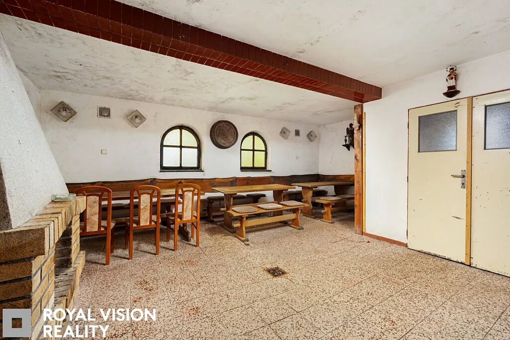 Budova je zděná, napojena na elektřinu, obecní vodovod i kanalizaci, a je možné připojit i plynovou přípojku. V přízemí se nachází zádveří, hostinská místnost, lisovna, samostatné WC celkem 45m2, klenutý vinný sklep 52,5 m2 (výška stropu 2,35m s vlastním odvodem odpadu.