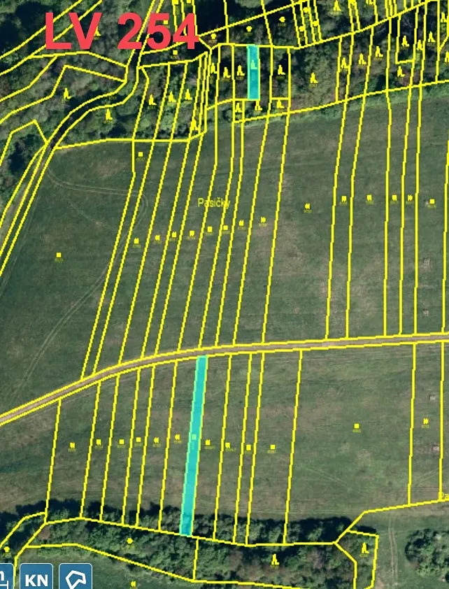 Nabízené pozemky jsou zapsány na 3 různých LV a celková výměra podílu je 6 166 m²